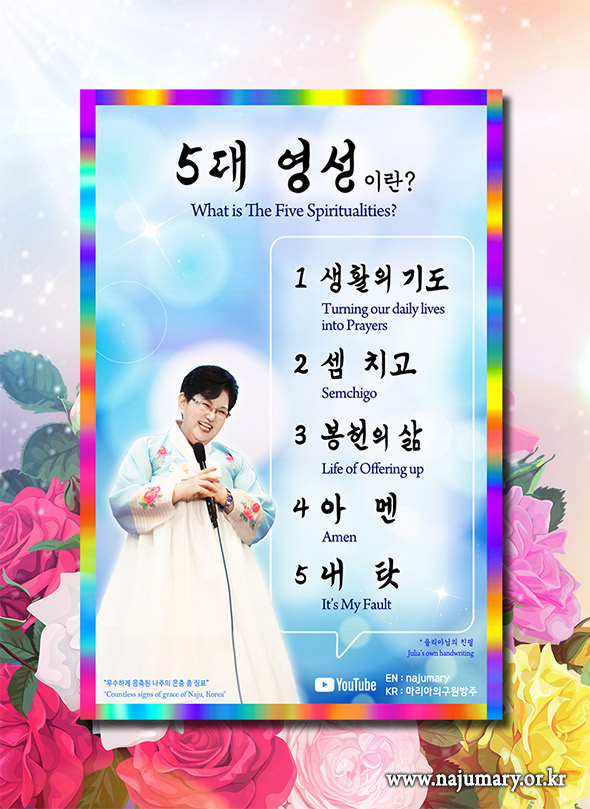S'il n'y avait pas eu les obstacles d'interférence (走前出足) causés par des êtres mal intentionnés qui ont utilisé toutes sortes de complots et de ruses, Naju aurait été reconnu, et l'Église aurait accepté les Cinq Spiritualités accomplies par la vie de Ma petite âme.