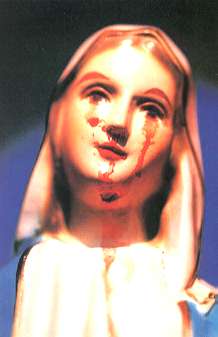 1991.3.25 아기 예수님 탄생 예고 대축일에 너무나 간절하게 눈물과 피눈물로 호소하셔서 성모님의 목이 부어 오르셨다.(우측)
