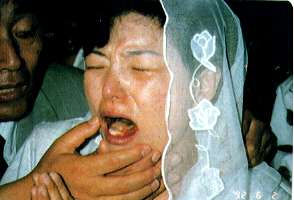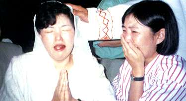 1992.6.2 1,300년 전에 성체의 기적이 일어났던 이탈리아 란치아노 성당에서의 미사 도중 율리아 자매 입안의 성체가 피와 살로 변화되는 모습을 보고 오열하는 신자들과 율리아 자매. 이날 예수님께서 메시지를 주셨다.