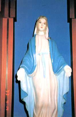 1993.4.14 징표를 주시겠다는 성모님의 메시지 말씀이 끝나고 비디오와 사진을 촬영하였는데 성모님의 오른손에 성체 모양의 형상이 선명하게 나타났다. 이 곳을 누르시면 문양의 형상을 보실 수 있습니다.